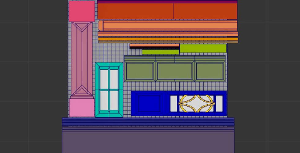 The next part of this week was exploring the application of Trim Sheets, following along with the murals I duplicated and split up my shop into parts that could become trim. Once this was done as instructed laid them out over a 400x400 plane for the baking process in Substance Painter.