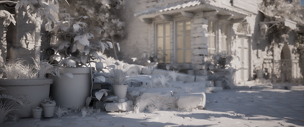 The scene will be dressed with a variety of location appropriate props and foliage to help promote the idea of a “living” world with rich environmental storytelling, complimented by a heavy focus on lighting/ value structure to push a realistic style.